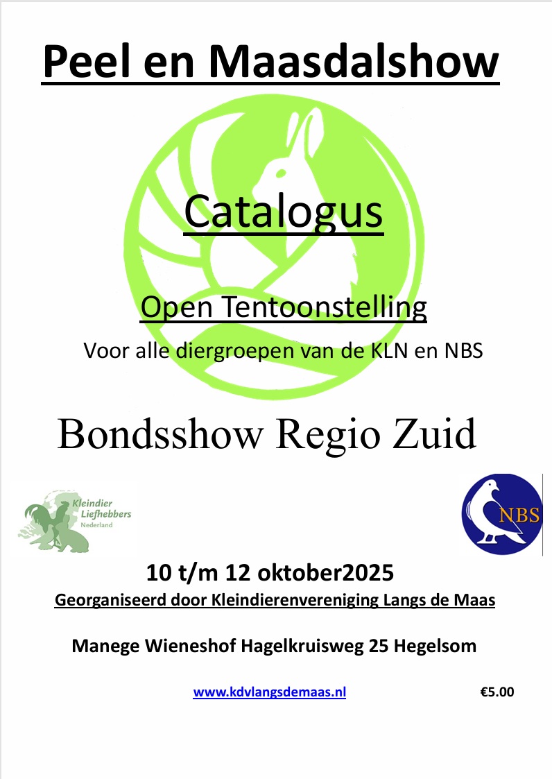 Het is inmiddels enkele weken geleden dat Peel en Maasdalshow 2025 heeft plaatsgevonden. Intussen is er veel gebeurd. Bij Peel en Maasdalshow 2025 waren alle diergroepen weer welkom. Welliswaar vondt de keuring voor watervogels middels een thuiskeuring plaats. Een indruk van de show treft u in voorgaande berichten aan. Hieronder kunt u de digitale versie van de catalogus downloaden om nog eens rustig door te nemen. Het mooie aanbod aan de grote diversiteit van dieren door te nemen en de prijswinnaars te bekijken. Veel plezier met de catalogus en we hopen u te mogen begroeten op Peel en Maasdalshow 2026 op 10 of 11 oktober.