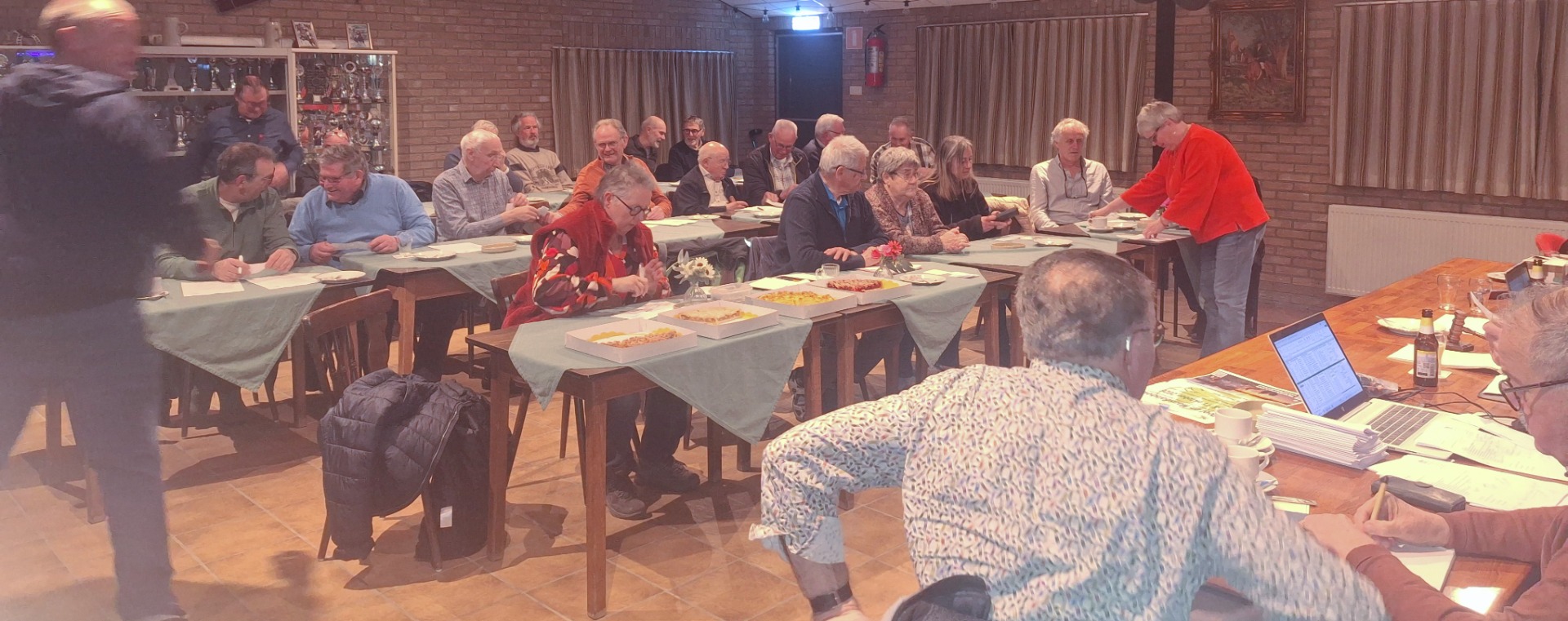 Al weer een jaar verstreken. Tijd voor de jaarvergadering. We worden ontvangen met koffie en vlaai. De secretaris presenteert zijn jaarverslag en ook de penningmeester komt aan de beurt voor zijn verslag. En ook dit jaar zijn er weer een paar bestuursleden aftreden en alle herkiesbaar. Na een schriftelijke kiesronde krijgen alle bestuursleden het vertrouwen van de vergadering om nog een paar jaar ertegenaan te gaan. Alle gefeliciteerd.