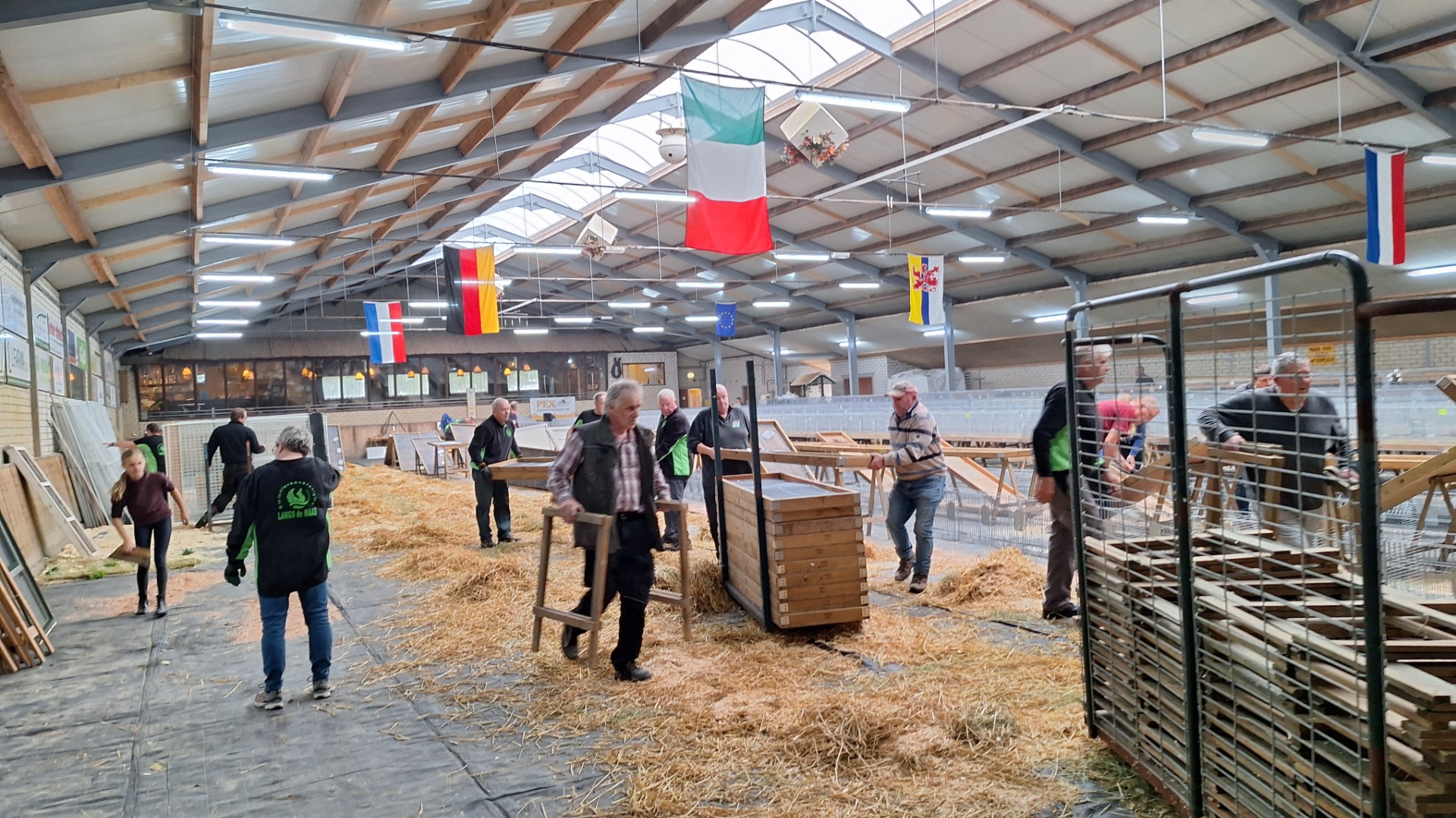 Na een aantal intensieve dagen en als de meeste dieren huiswaarts zijn, is het alle handen uit de mouwen, er is een tentoonstellingsruimte af te breken. Opbouwen gaat snel maar afbreken nog veel sneller. In amper 5 uurtjes nadat de dieren de kooien verlaten gaat de deur op slot van de opslag lokatie en zijn de materialen allemaal weer terug op zijn plek. We kunnen terug kijken op een mooie editie van de Peel en Maasdalshow .